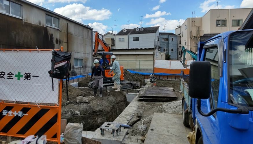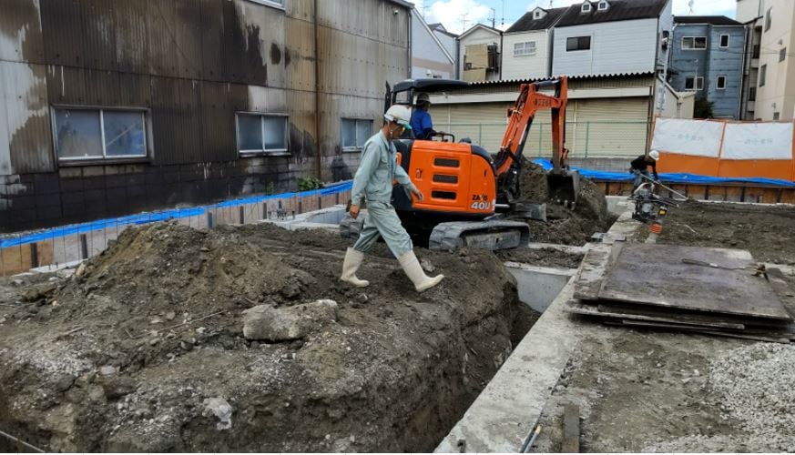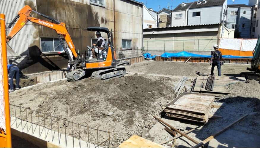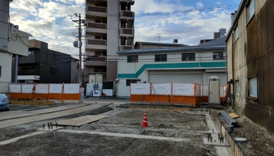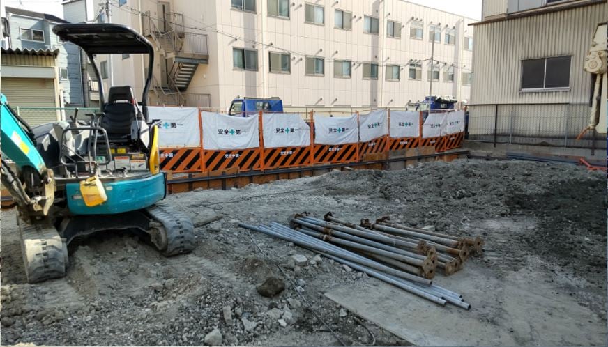 杭打ち工事が終わり、2021年7月21日 から基礎工事の始まりです。