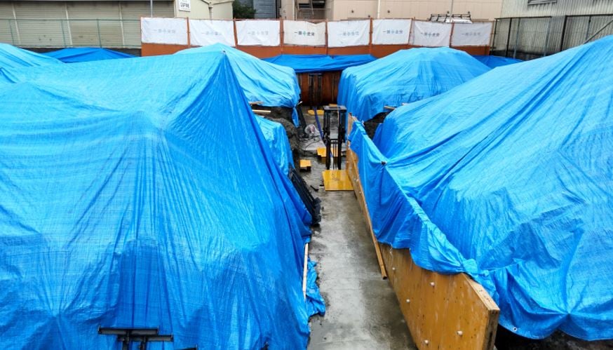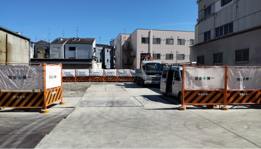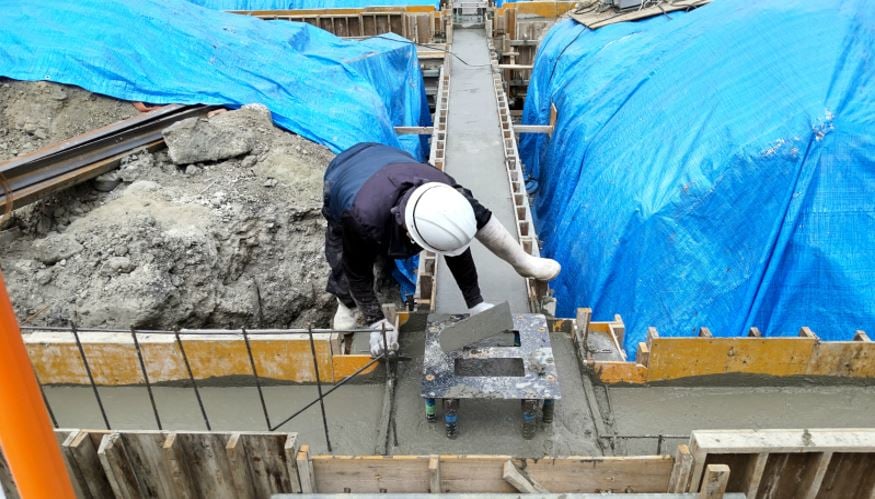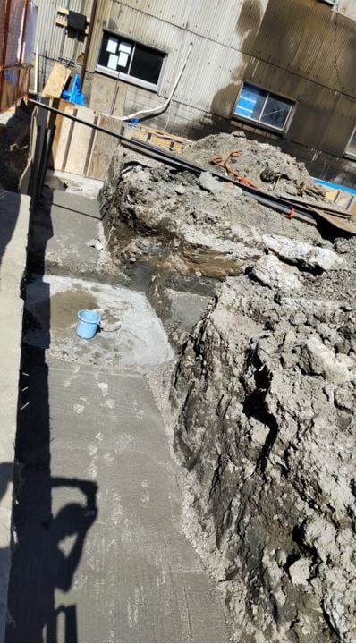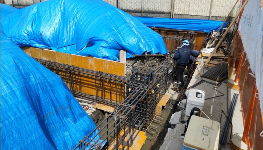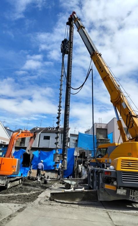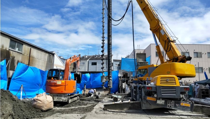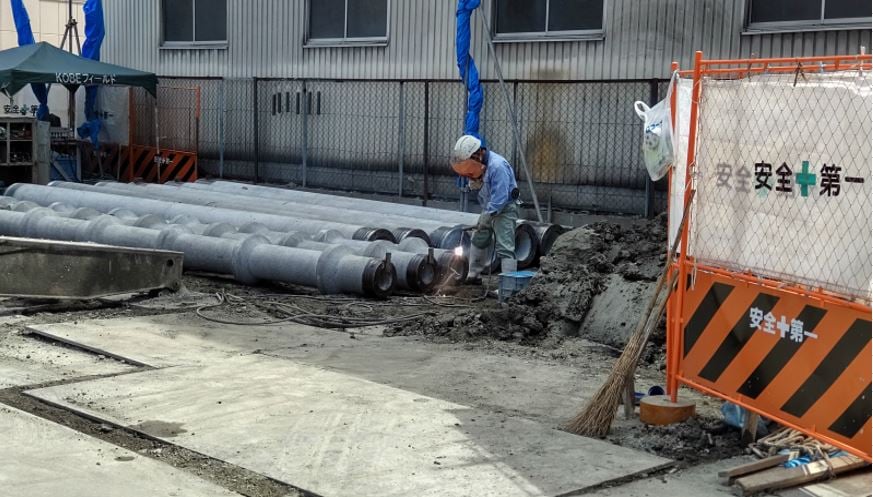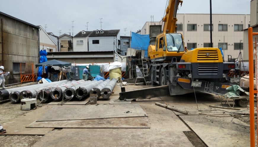 建物の柱が立つ基礎部を掘り抜いてそこにセメントを流し込んでいました。