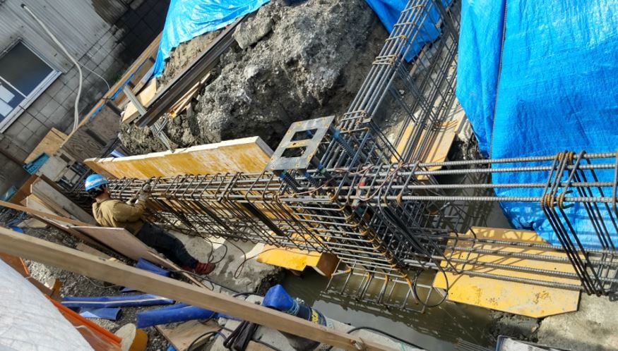 工事は 鉄筋を囲いながらだんだんと基礎工事が進んでいます。