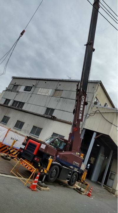 7M の柱2本と6M の柱1本で 20M の杭 そこにセメントを流し込む作業です。