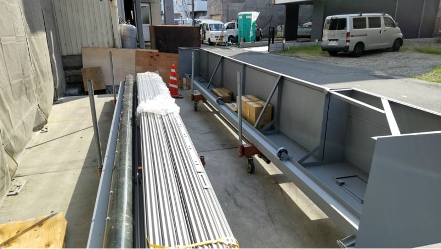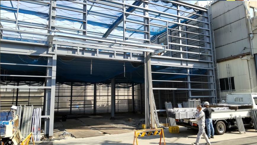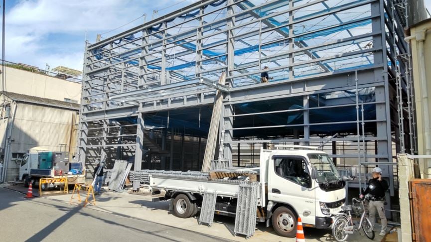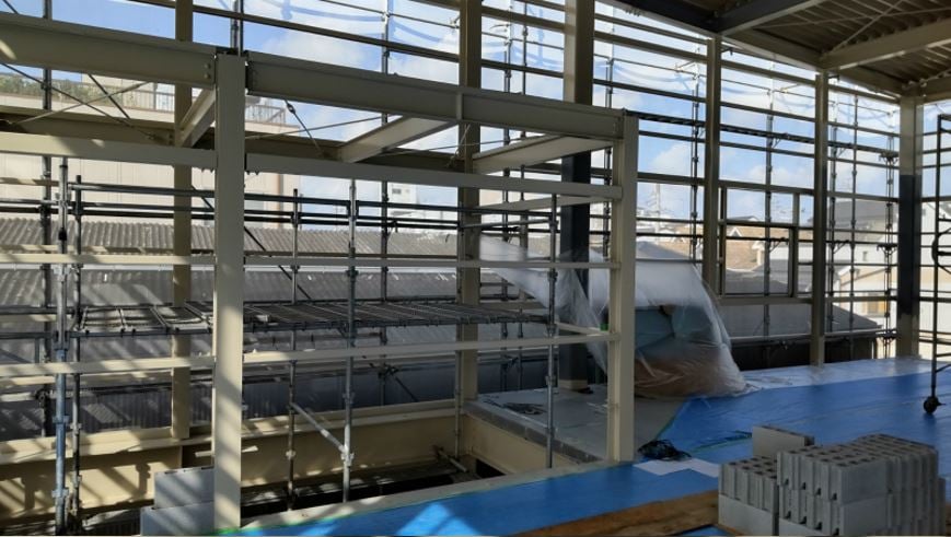 鉄骨のペンキ塗りが始まりました。