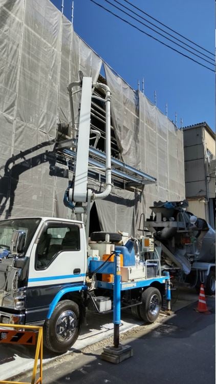 2階へコンクリート入れが始まりました。